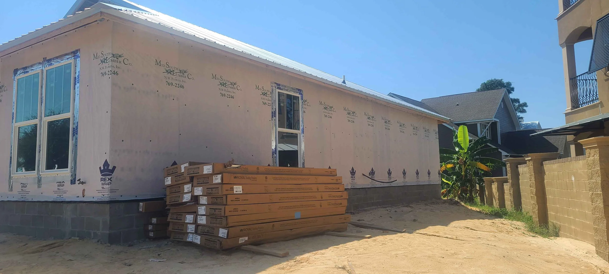 Never Paint or Worry With Rot Again. We Flash the Bottom of Your T-11 & Wrap Your Exterior With Only The Best (Tyvex) Before Installing Your Choice of Vinyl Product.